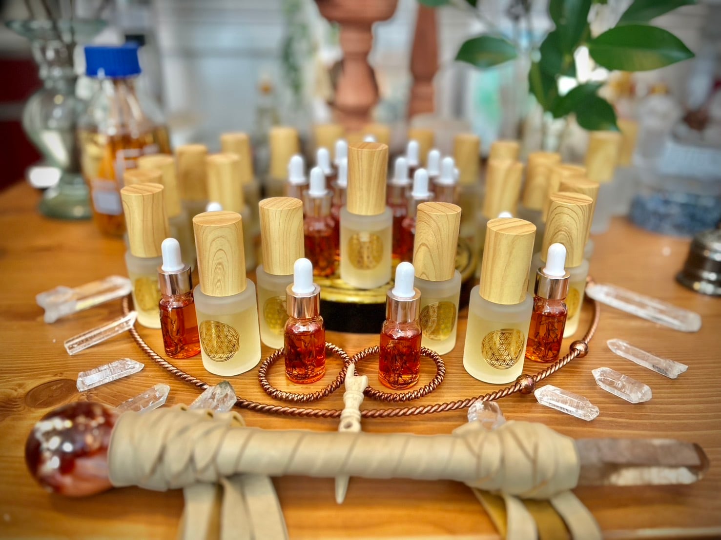 空間やオーラフィールドにひと吹きすることで、不要な気配を祓い、リチュアルにふさわしいクリアな結界をつくります。